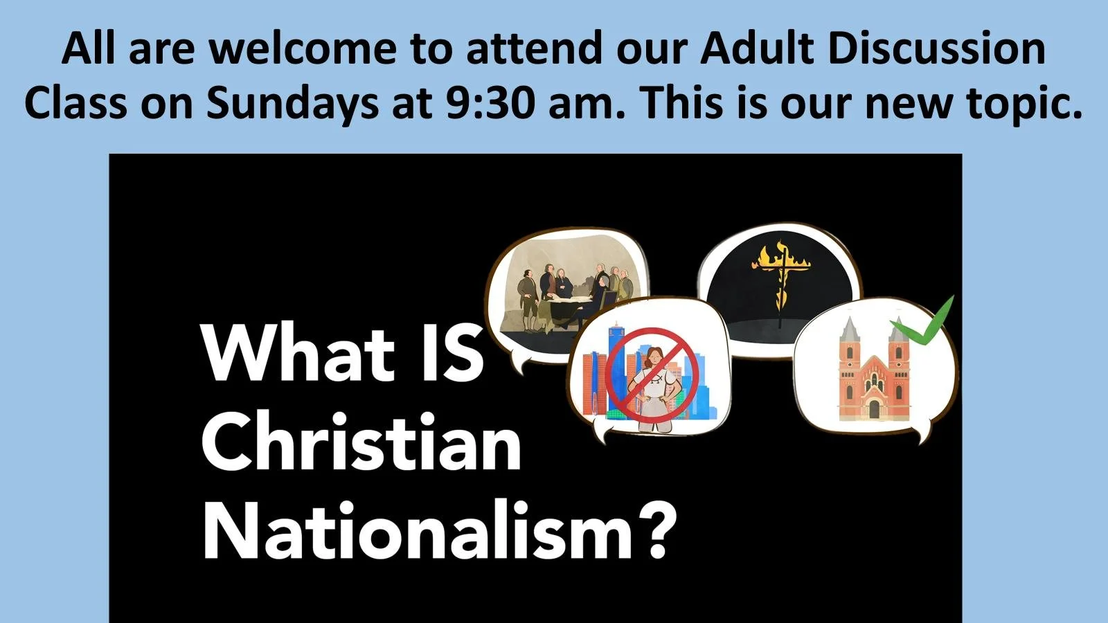 The Adult Sunday Study Class, which meets at 9:30 a.m. on Sunday mornings, invites all adults to be with us. We engage various topics, some from the Bible and some from current events. We use a variety of resources to inform our study and discussions. We engage in open discussion, and all viewpoints are welcomed. One is free to share and discuss as one feels led. One is also free to just sit and listen. We explore together, ask questions, listen to one another, and get to know one another better. We rely on the spirit of God to enlighten us, teach us, challenge us, and grow us as spend time together in this study and discussion setting.